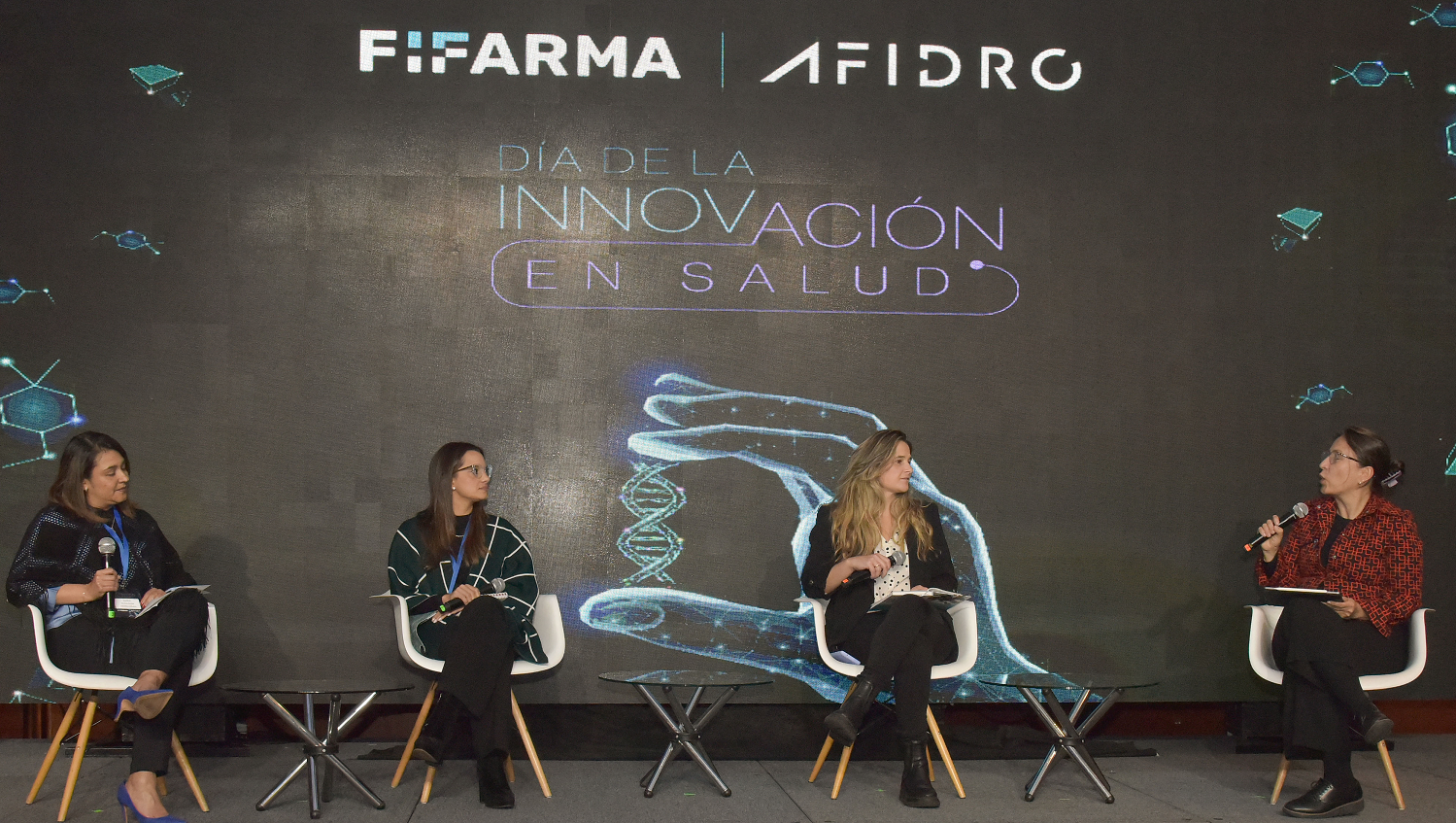 María Clara Escobar, Presidente Ejecutiva de AFIDRO, y Yaneth Giha, Directora Ejecutiva de FIFARMA hicieron la introducción al evento con el conversatorio “La innovación es esencial para la salud. Hoy no podríamos estar donde estamos si no le hubiéramos apostado a la innovación” mencionó Yaneth Giha, destacando cómo ha revolucionado y mejorado la vida de muchas personas globalmente. Por su parte, María Clara, subrayó la urgencia de priorizar la eficiencia en los recursos destinados a la salud “Tenemos crecientes necesidades en materia de salud y recursos limitados; es importante trabajar para que haya eficiencia en el gasto en salud”.